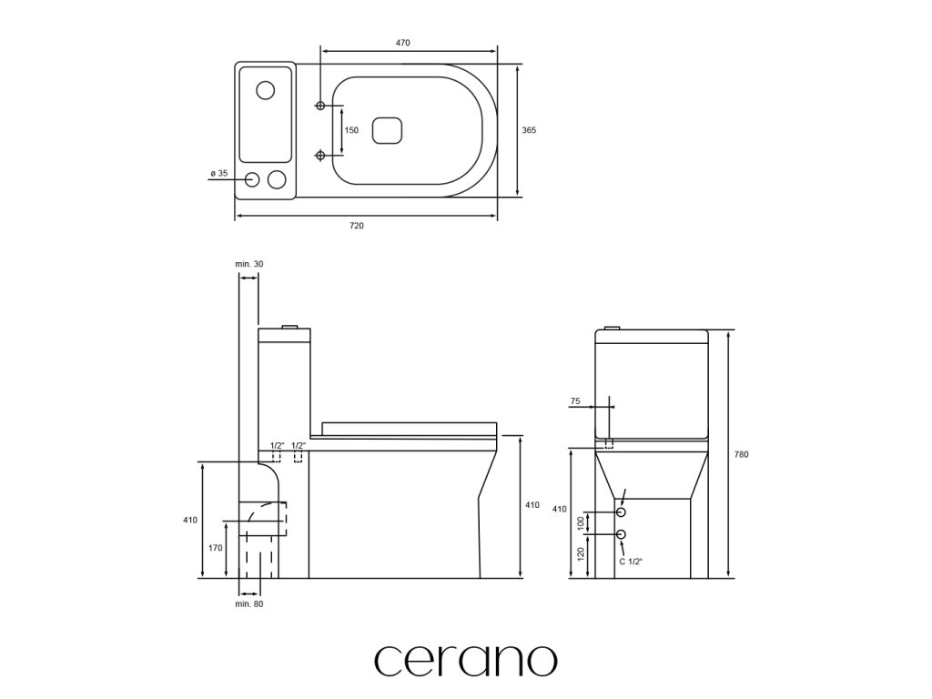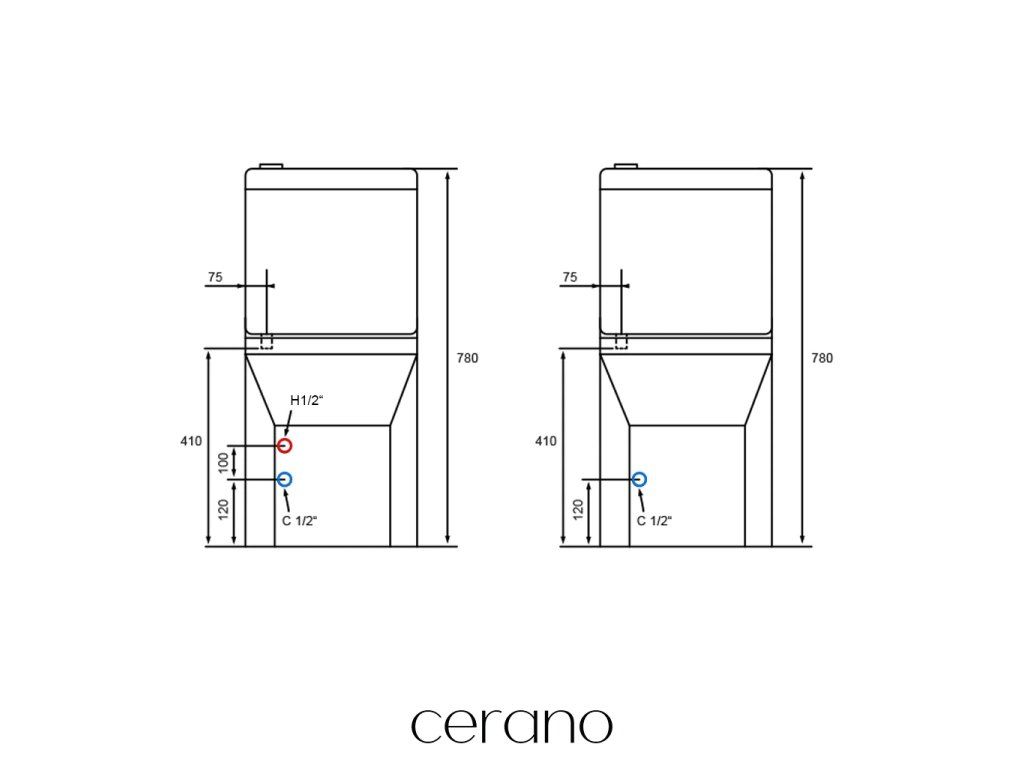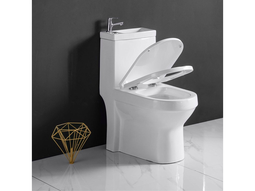 CERANO - WC kombi s umývátkem Hygisink, Rimless + UF sedátko - spodní/zadní odpad - bílá lesklá - 71,5x36 cm