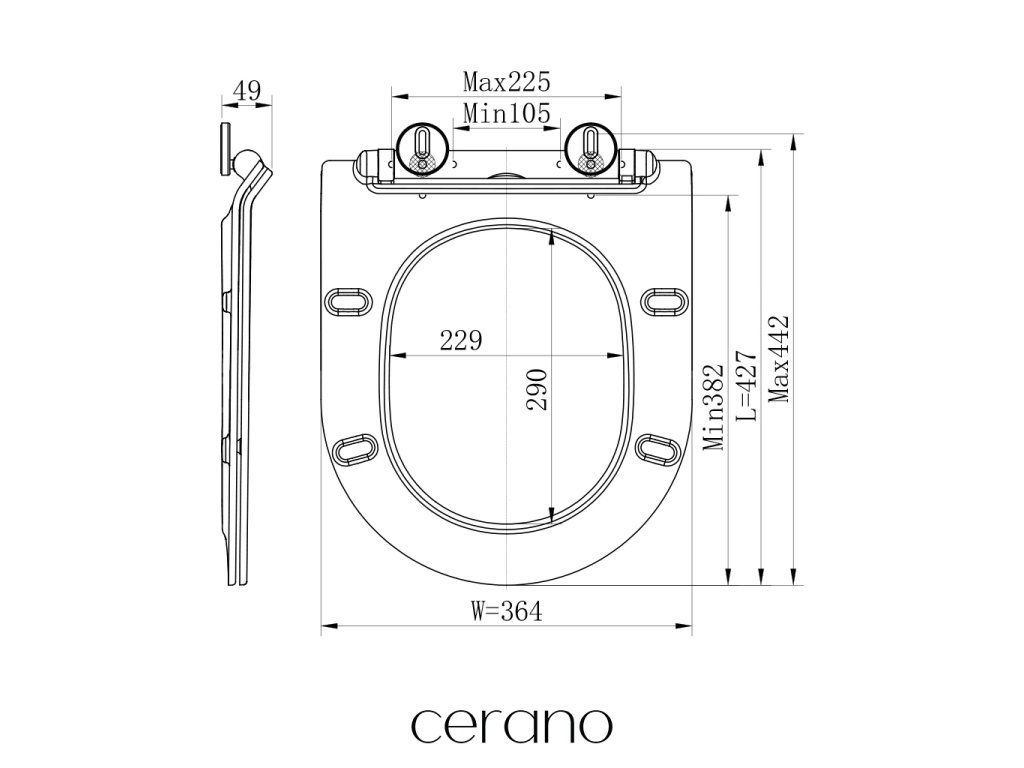 CERANO - WC sedátko se zpomalovacím mechanismem Sedile - slim - černá lesklá - 36,4x4,9x42,7 cm