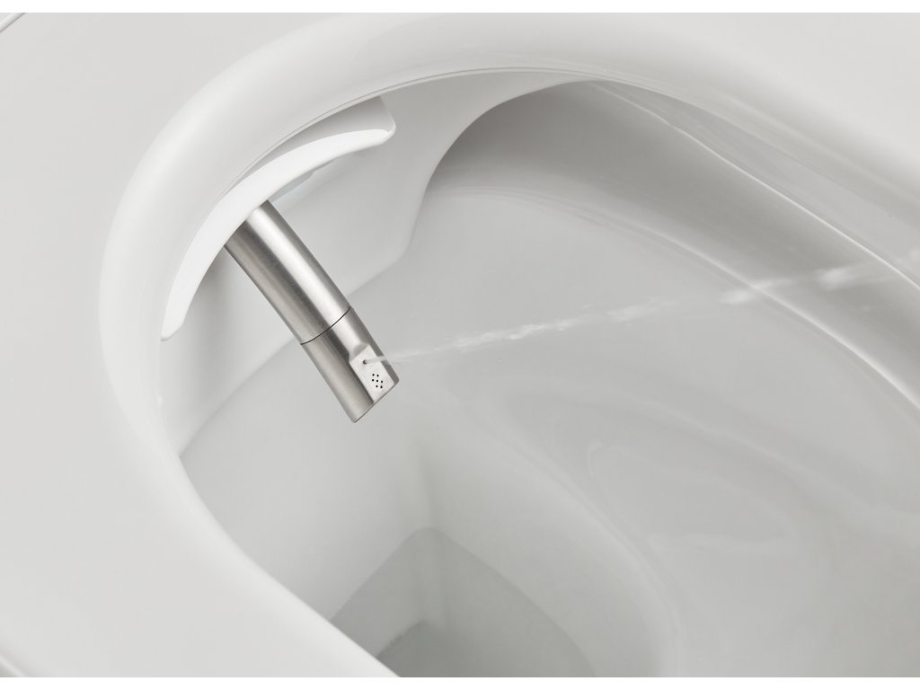 Šetrně čistí teplou vodou jemnými pohyby vpřed a vzad. Intenzitu proudu i teplotu si lze přizpůsobit podle potřeby. Tryska se automaticky čistí před a po každém použití, v klidovém stavu je bezpečně ukryta v sedátku. Pro ruční údržbu ji lze jednoduše vyjmout.