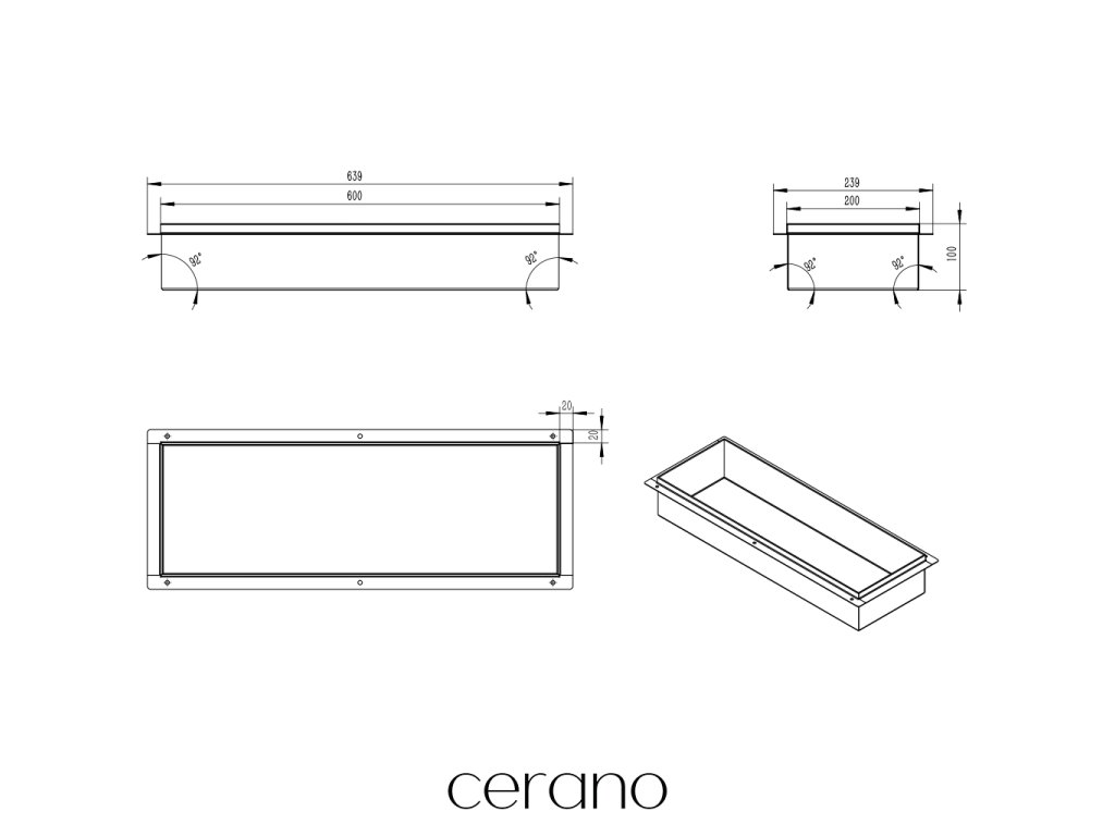 CERANO - Zápustná polička/nika do obkladu - nerezová - 60x20x10 cm
