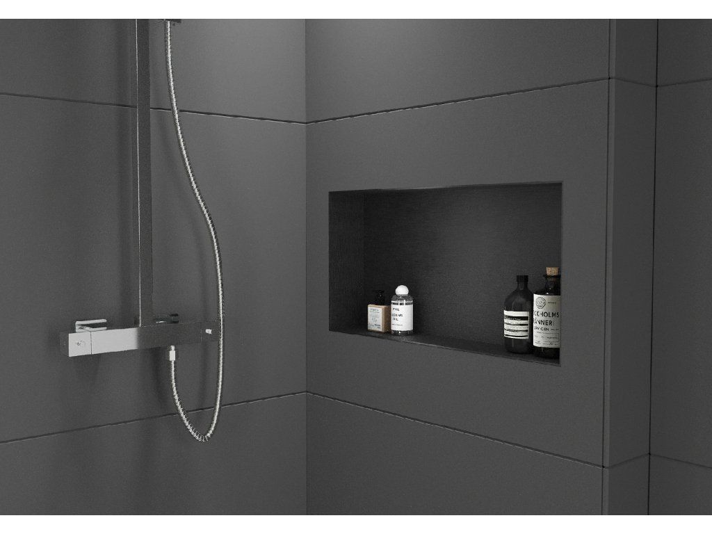 CERANO - Zápustná polička/nika s okrajem do obkladu - černá matná - 60x20x10 cm
