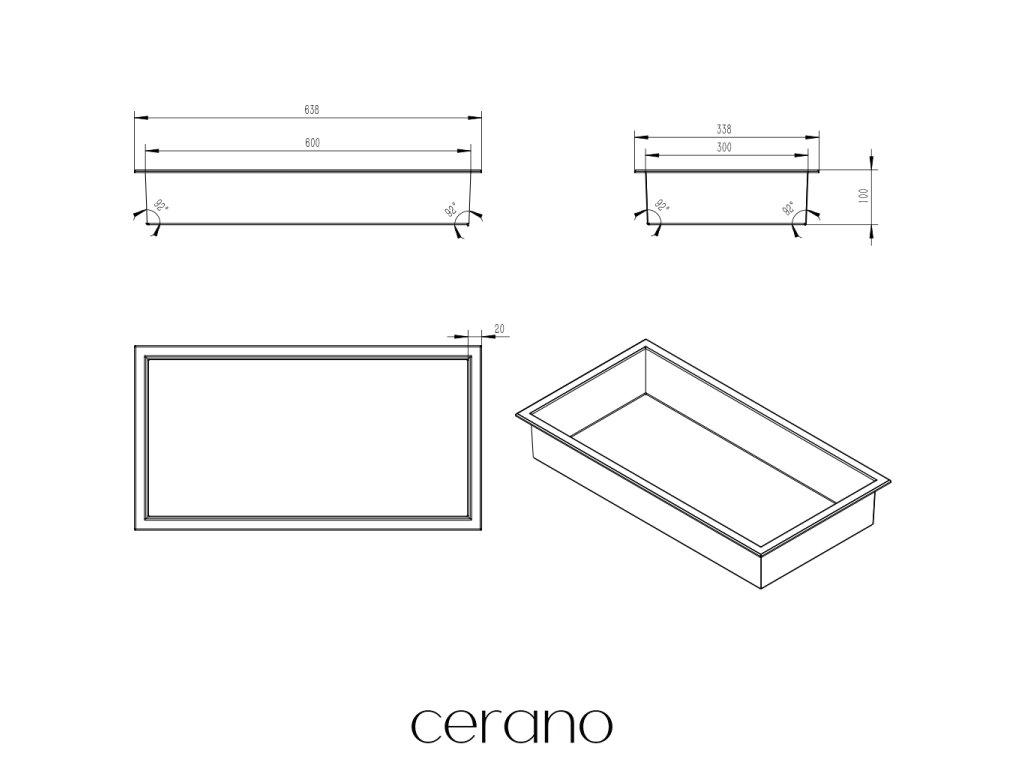 CERANO - Zápustná polička/nika s okrajem do obkladu - nerezová - 60x30x10 cm