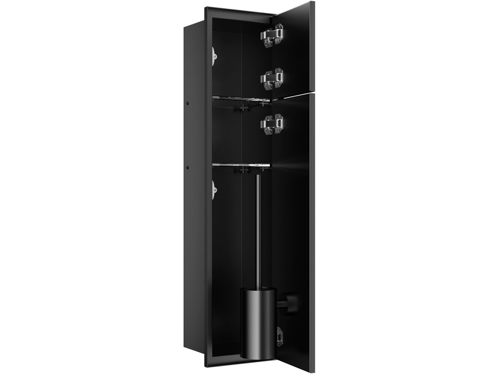 CERANO - Zápustná skříňka na toaletní papír Inova - k obložení - 2 police - černá matná - 78,2x19,6x16 cm
