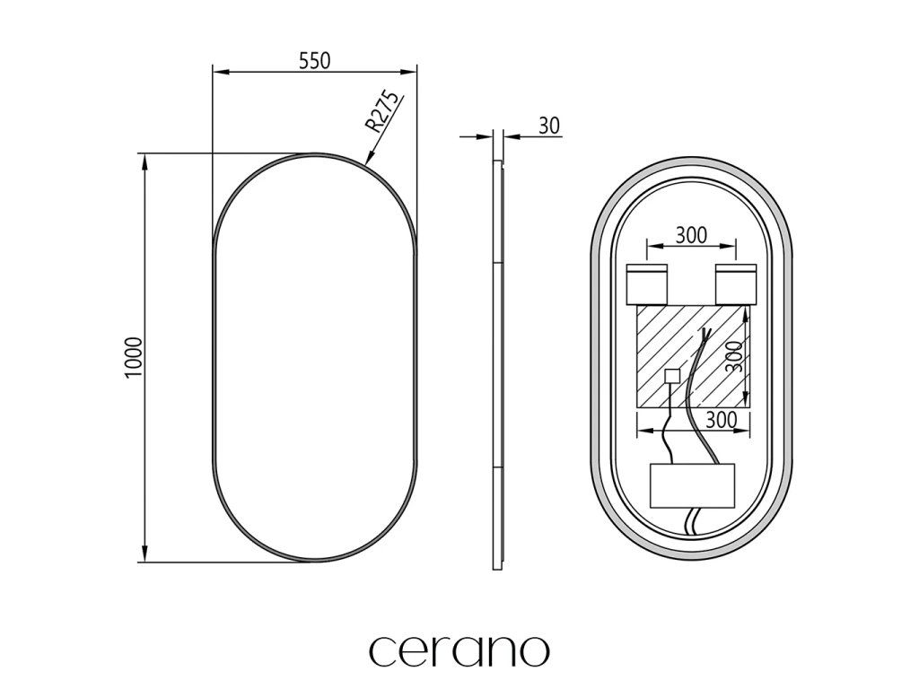 CERANO - Koupelnové LED zrcadlo Balzo, kovový rám - černá matná - 55x100 cm
